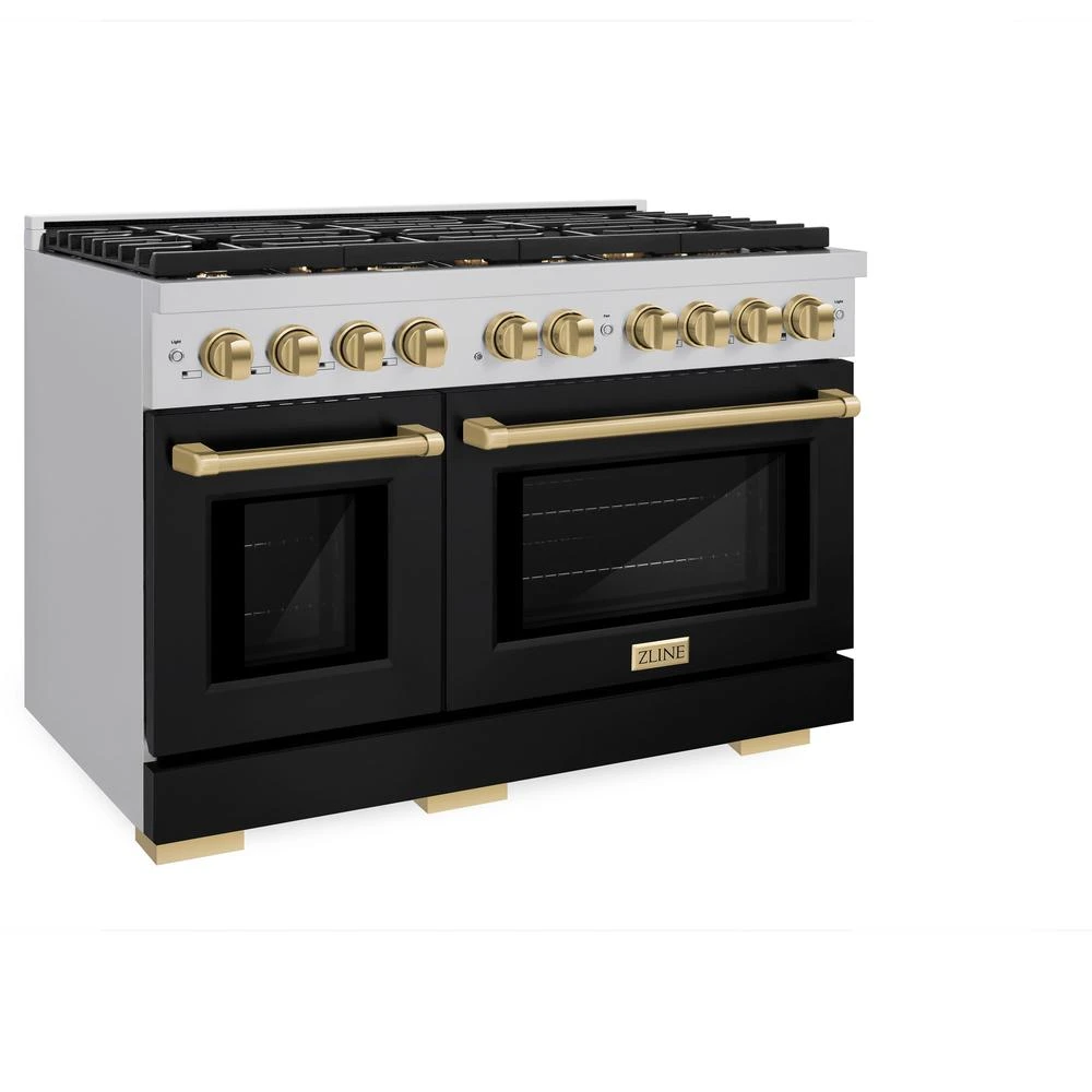 ZLINE Autograph Edition 48 In. 6.7 Cu. Ft. Paramount Double Oven Dual Fuel Range With 8 Burner Gas Cooktop In Stainless Steel With Black Matte Doors And Champagne Bronze Accents (SDRZ-BLM-48-CB)(Zline Autograph Edition 48 Paramount Dual Fuel Range Stainless Steel Black Matte Champagne Bronze Sdrz Blm 48 Cb)