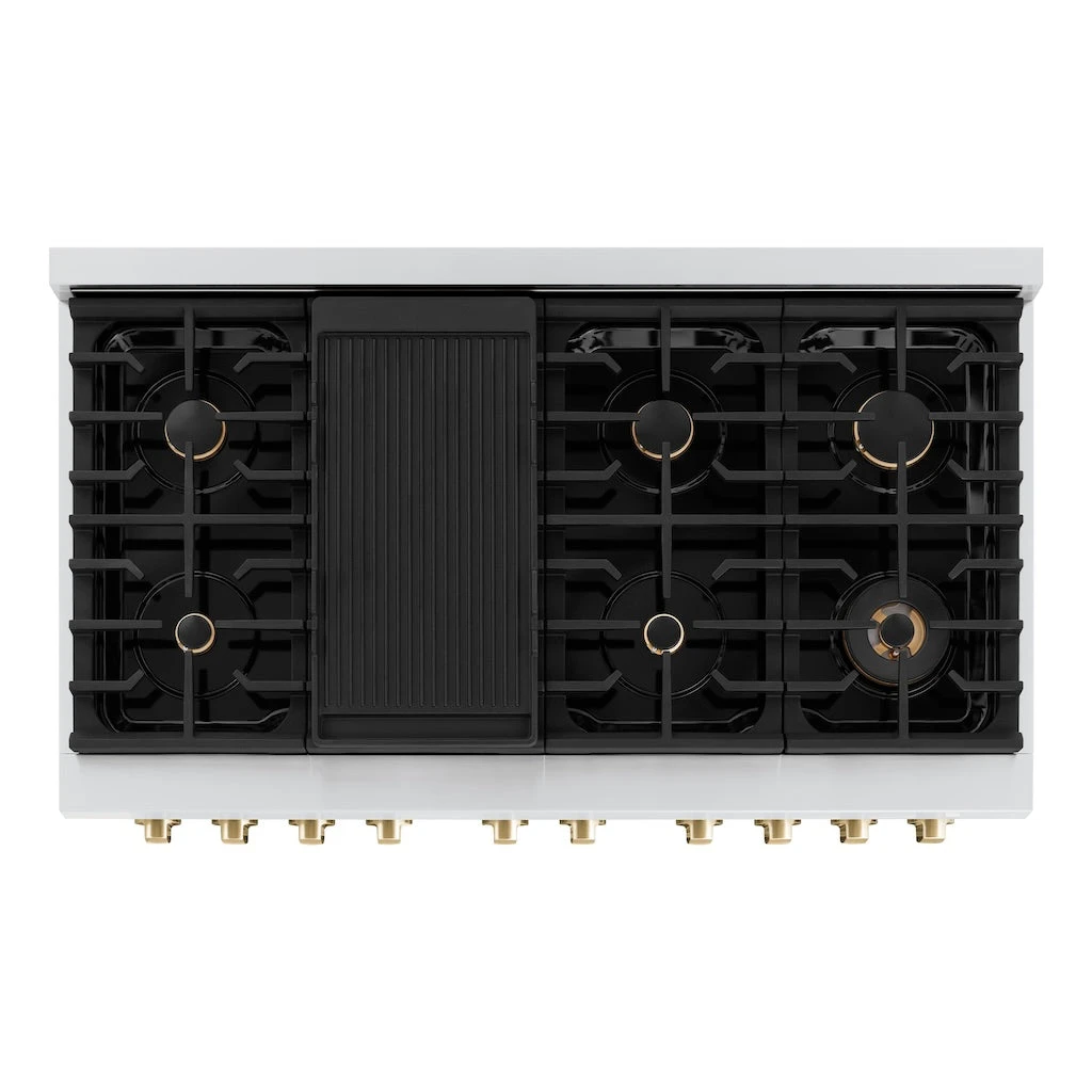 ZLINE Autograph Edition 48 In. 6.7 Cu. Ft. Paramount Double Oven Gas Range With 8 Burner Cooktop In Stainless Steel With Black Matte Doors And Polished Gold Accents (SGRZ-BLM-48-G)(Zline Autograph Edition 48 Paramount Gas Range Stainless Steel Black Matte Polished Gold Sgrz Blm 48 G)
