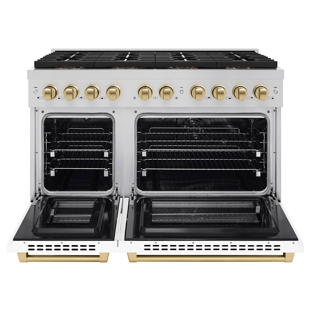 ZLINE Autograph Edition 48 In. 6.7 Cu. Ft. Paramount Dual Fuel Range With 8 Burner DuoPro™ Cooktop And Dual Ovens With White Matte Doors And Champagne Bronze Accents (PSDRZ-WM-48-CB)(Zline Autograph Edition 48 Paramount Dual Fuel Range Duopro Stainless Steel White Matte Champagne Bronze Psdrz Wm 48 Cb)