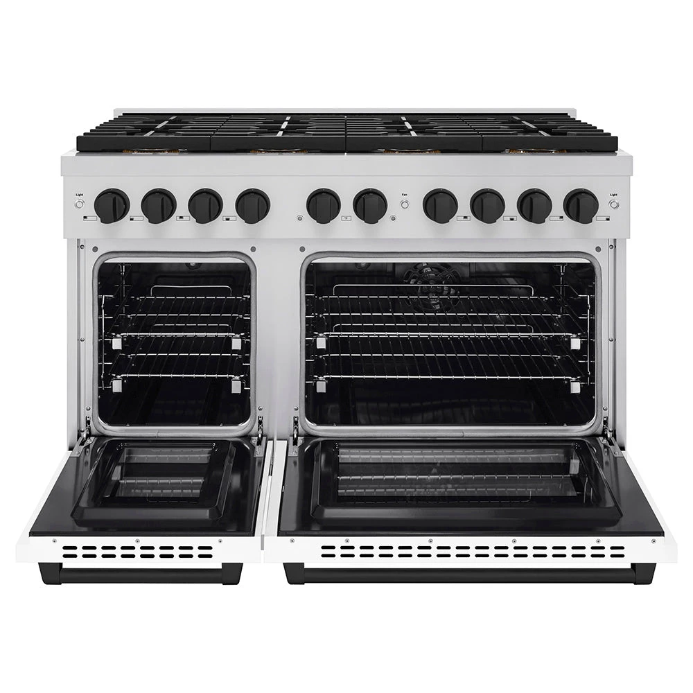 ZLINE Autograph Edition 48 In. 6.7 Cu. Ft. Paramount Dual Fuel Range With 8 Burner DuoPro™ Cooktop And Dual Ovens With White Matte Doors And Matte Black Accents (PSDRZ-WM-48-MB)(Zline Autograph Edition 48 Paramount Dual Fuel Range Duopro Stainless Steel White Matte Matte Black Psdrz Wm 48 Mb)