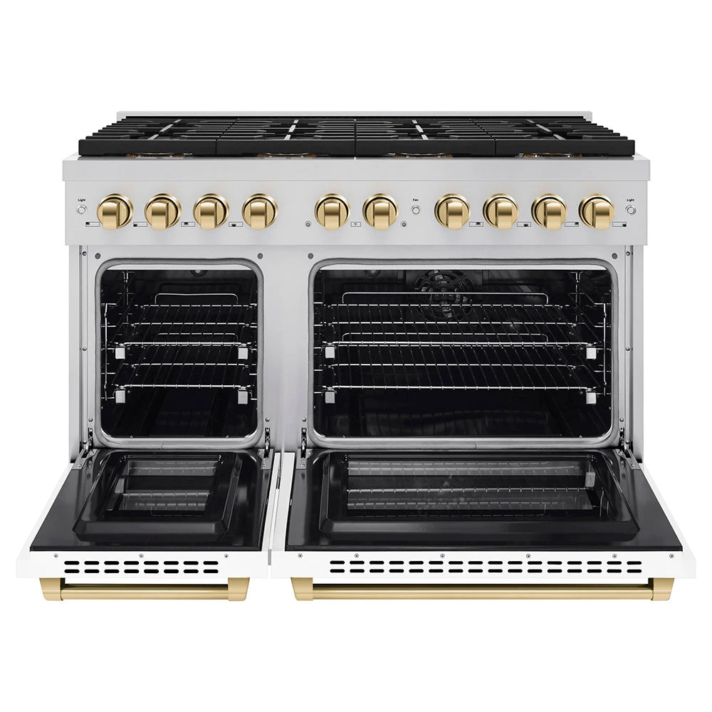 ZLINE Autograph Edition 48 In. 6.7 Cu. Ft. Paramount Dual Fuel Range With 8 Burner DuoPro™ Cooktop And Dual Ovens With White Matte Doors And Polished Gold Accents (PSDRZ-WM-48-G)(Zline Autograph Edition 48 Paramount Dual Fuel Range Duopro Stainless Steel White Matte Polished Gold Psdrz Wm 48 G)