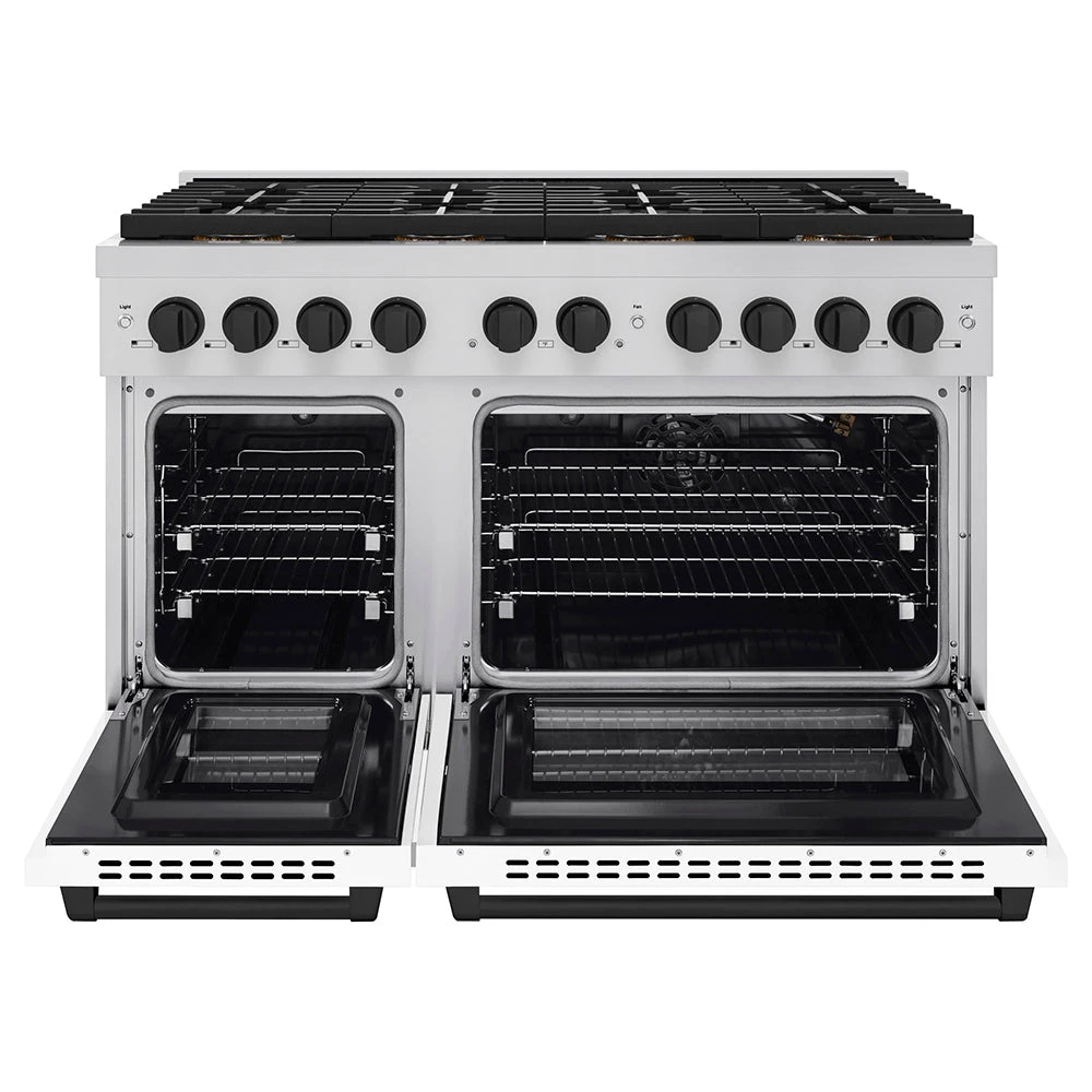 ZLINE Autograph Edition 48 In. 6.7 Cu. Ft. Paramount Gas Range With 8 Burner DuoPro™ Cooktop And Dual Ovens With White Matte Doors And Matte Black Accents (PSGRZ-WM-48-MB)(Zline Autograph Edition 48 Paramount Gas Range Duopro Stainless Steel White Matte Matte Black Psgrz Wm 48 Mb)