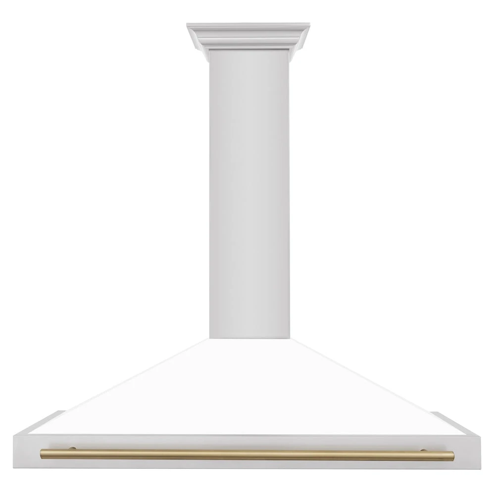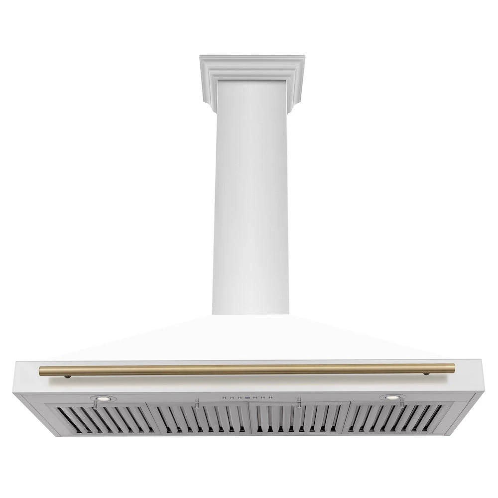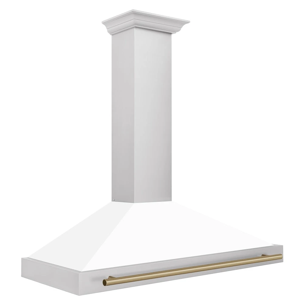 ZLINE Autograph Edition 48 In. Convertible Stainless Steel Range Hood With White Matte Shell And Champagne Bronze Accents (KB4STZ-WM48-CB)(Zline Autograph Edition 48 Wall Mount Range Hood Stainless Steel White Matte Champagne Bronze Kb4stz Wm48 Cb)