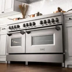 Luxury isn’t meant to be left desired—it’s meant to be attainable. The ZLINE Autograph Edition 60 in. 7.4 cu. ft. Legacy Dual Fuel Range with 9 Burner Gas Cooktop and 2 Electric Convection Ovens in Satin Stainless Steel with White Matte Doors and Matte Black Accents (RASZ-WM-60-MB) pairs a powerful gas cooktop with 9 Italian-crafted burners, dual electric convection ovens, beautiful white matte doors with Landscape window designs, and elegant matte black knobs and handles. With innovative features designed to enhance your kitchen’s capability, ZLINE Legacy Dual Fuel Ranges provide a professional culinary experience by pairing unmatched performance with timeless style.
