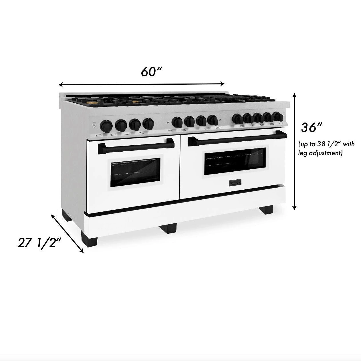ZLINE Autograph Edition 60 In. 7.4 Cu. Ft. Legacy Dual Fuel Range With 9 Burner Gas Cooktop And 2 Electric Convection Ovens In Stainless Steel With White Matte Doors And Matte Black Accents (RAZ-WM-60-MB)(Zline Autograph Edition 60 Legacy Dual Fuel Range Stainless Steel White Matte Matte Black Raz Wm 60 Mb)