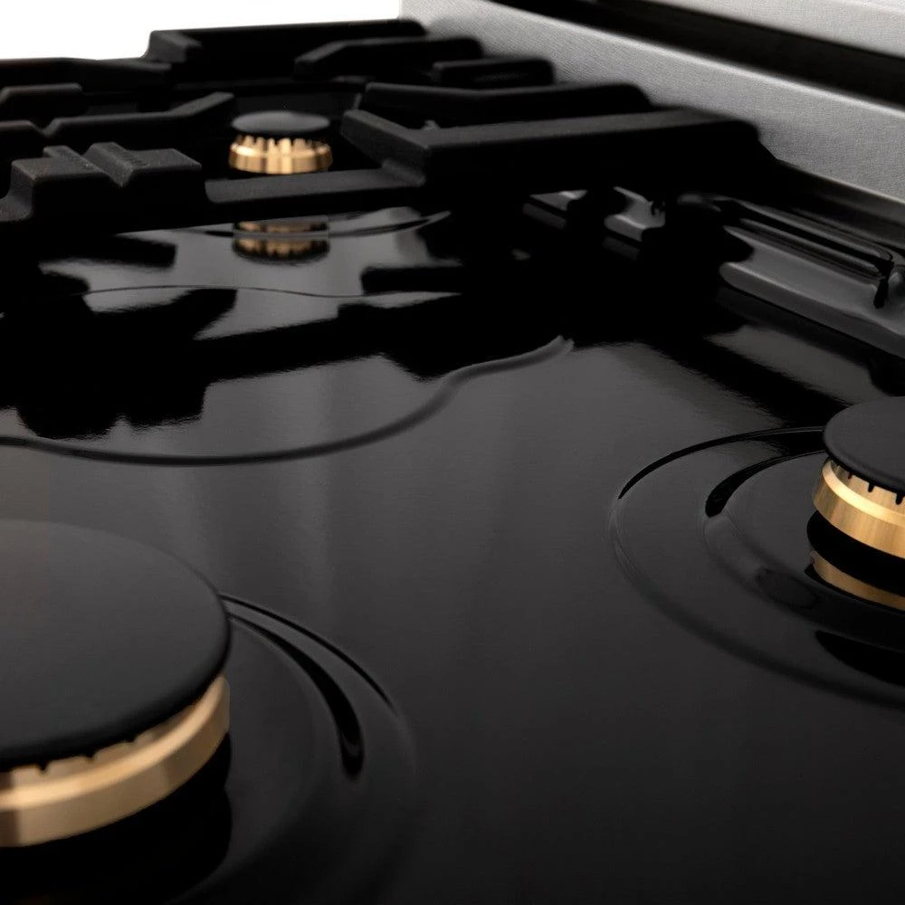 Luxury isn’t meant to be desired – it’s meant to be attainable. The ZLINE Autograph Edition 60 in. 7.4 cu. ft. Legacy Dual Fuel Range with 9 Burner Gas Cooktop and 2 Electric Convection Ovens in Stainless Steel with White Matte Doors and Matte Black Accents (RAZ-WM-60-MB) pairs a powerful gas cooktop with 9 Italian-crafted burners, dual electric convection ovens, beautiful white matte doors with Landscape window designs, and elegant matte black knobs and handles. With innovative features designed to enhance your kitchen’s capability, ZLINE Legacy Dual Fuel Ranges provide a professional culinary experience by pairing unmatched performance with timeless style.